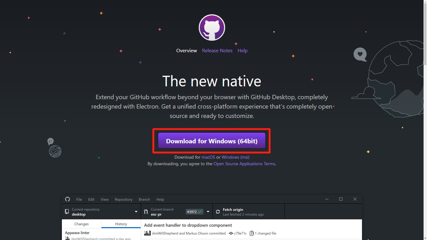 英文版下载界面:https://nodejs.org/en/download/ - GitHub Desktop(或者Git,二选一)