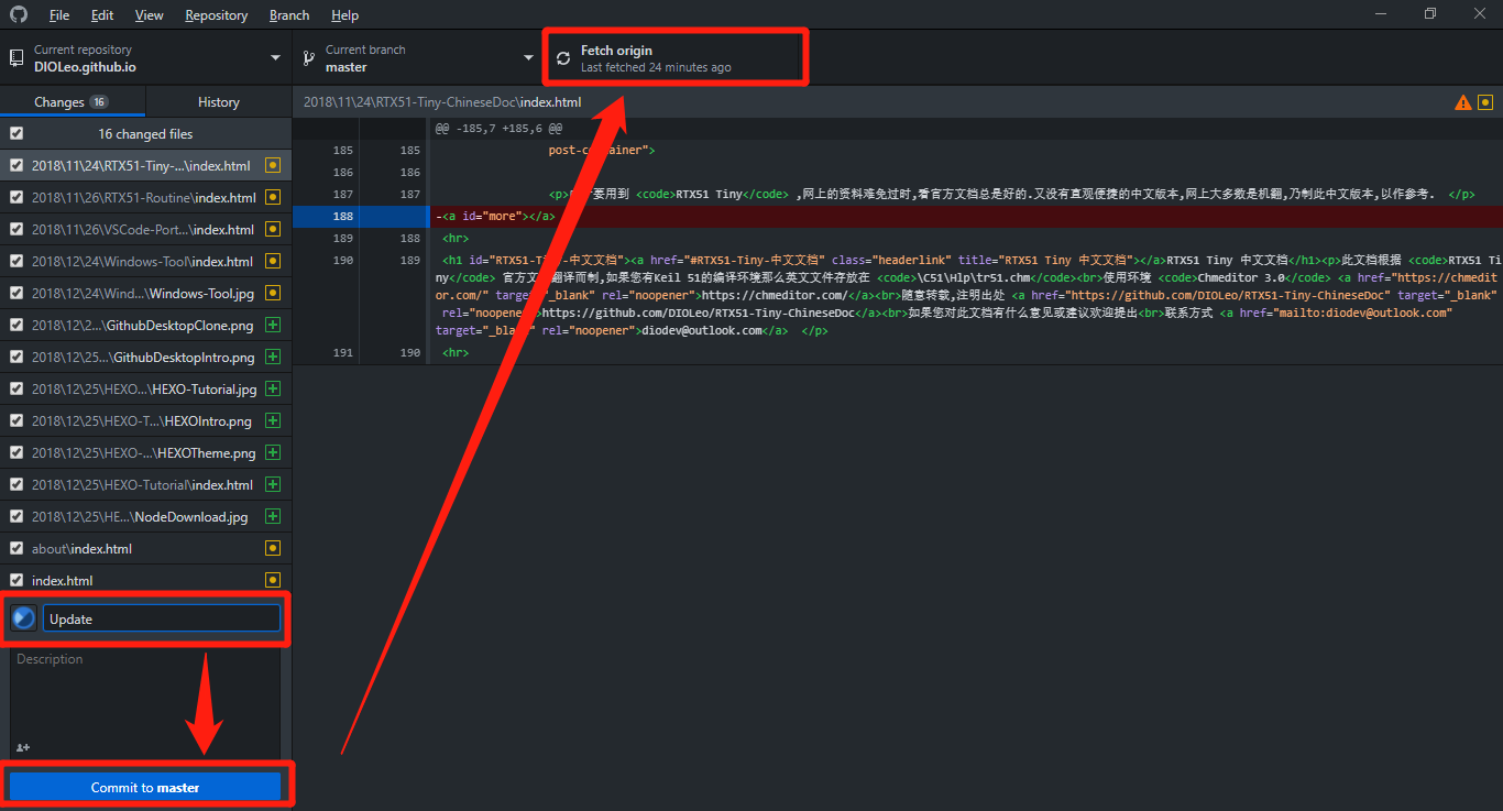 这个时候Github Desktop会自动检测到你的文件有改动,这时填写Summary